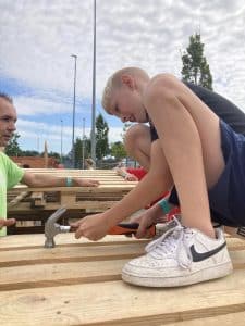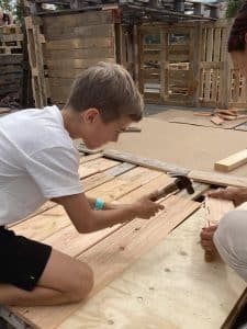 Drie dagen lang timmer je samen met je eigen groepje van zo’n tien kinderen aan een echte hut – helemaal zelf bedacht, ontworpen én gebouwd. Twee enthousiaste vrijwilligers helpen je op weg. Maar timmeren is nog maar het begin!